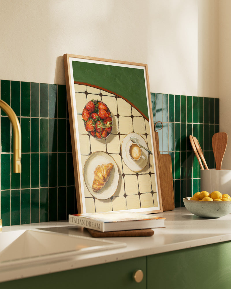 Do you like having a little art in the kitchen? I think it makes the space feel warmer and more inviting. I’ve painted a few breakfast tables, cups of coffee, wine... and some of those paintings are now available as prints. If you’d like to bring that kind of vibe into your kitchen or dining corner, you can explore my Kitchen Art collection.